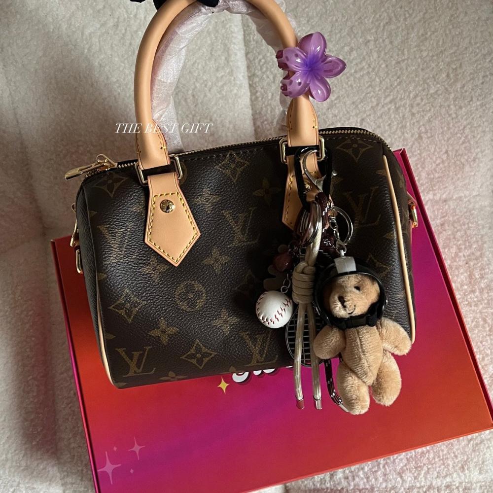دست باق بشعار العلامة التجارية + مفتاح وقفل Lv + ستراب قماشي عريض